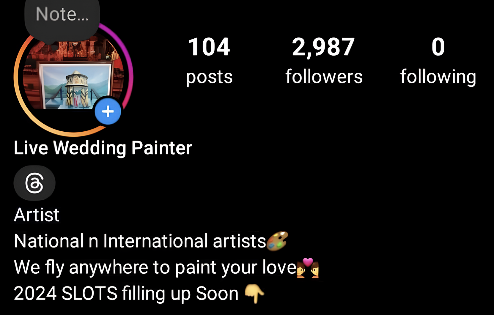 One of my clients is a Live wedding painter, grew from 2 to 15K followers in 6 months, with bookings getting completely filled.